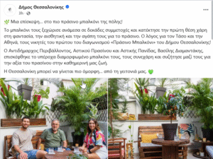 Ο Αντιδήμαρχος Περιβάλλοντος, Αστικού Πρασίνου και Αστικής Πανίδας, Βασίλης Διαμαντάκης, επισκέφθηκε το υπέροχα διαμορφωμένο μπαλκόνι τους, τους συνεχάρη και συζήτησε μαζί τους για την αξία του πρασίνου στην καθημερινή μας ζωή.